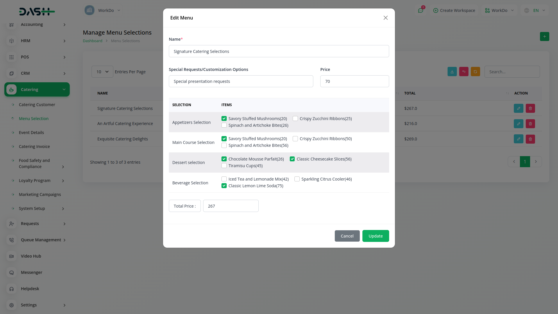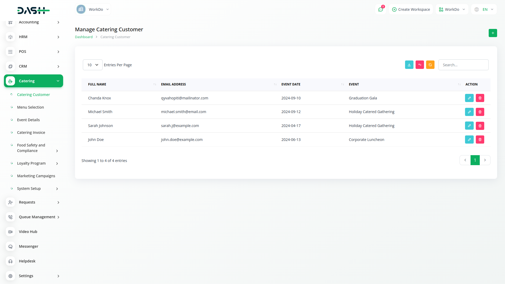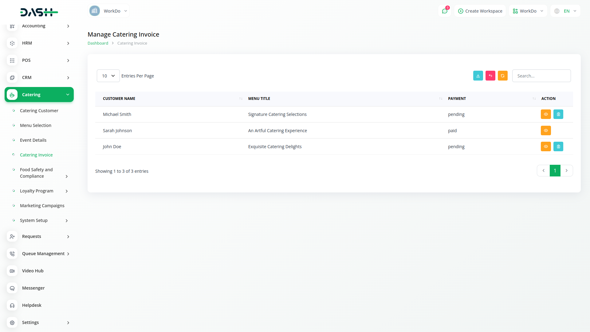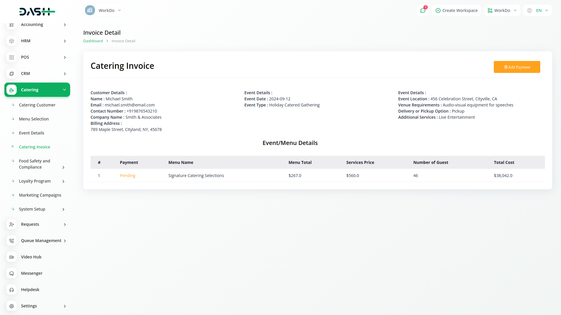 Introducing the Catering Management Module of Dash SaaS, your all-in-one solution for efficiently managing catering services. With our intuitive platform, you can effortlessly oversee every aspect of your catering business, from customer management to menu selection, event details, and invoicing.