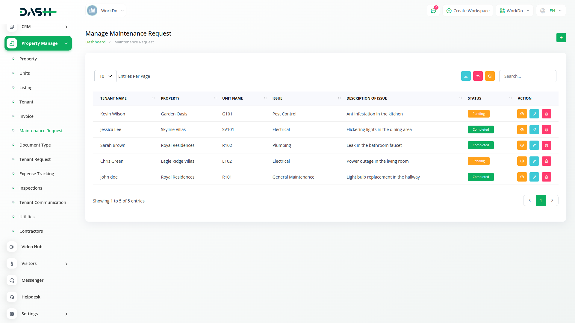 Modify and update your generated property management property units with ease. Add new property, unit and his details without stress. Property Management allows you to create and maintain the data of each tenant. You get access to all essential information through a well-maintained format.